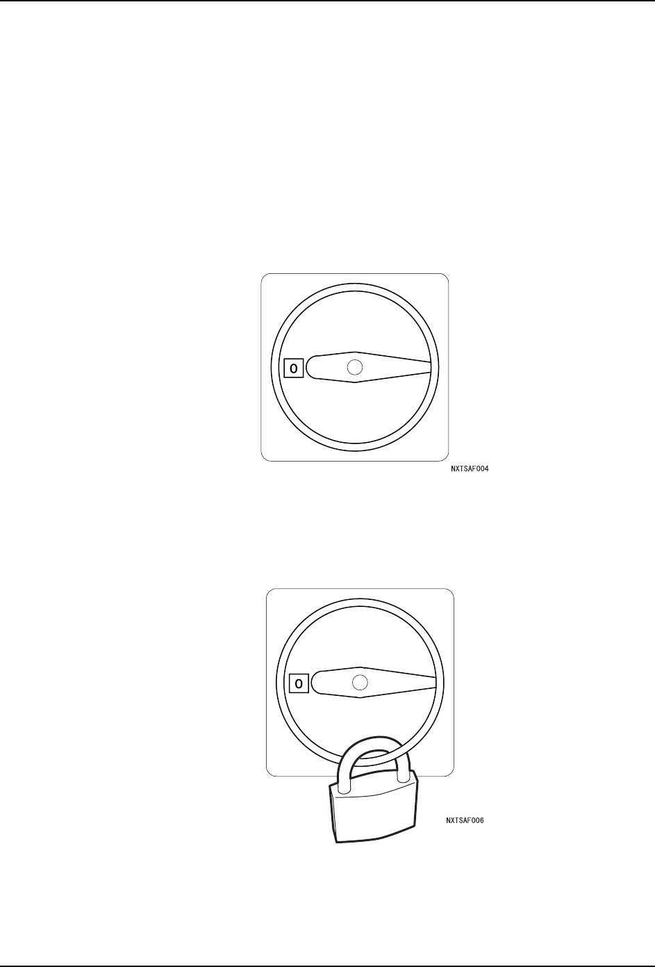 MEC-XP143-1.0S 1. 安全指南 XP-143 机械手册 15 4. 同样将空气阀手柄旋转至 OFF 位置,锁上荷包锁。 锁紧的荷包锁上贴有写着开始操作 的各个操作人员名字的标签。 5. 到此为止闭锁的操作结束。