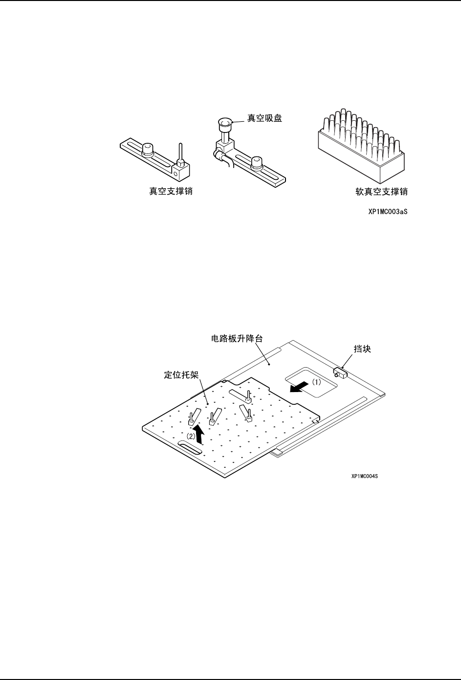 7. 在提升电路板升降台之前,请确认真空支撑销不与从动端的搬运轨道相接触。如果有接