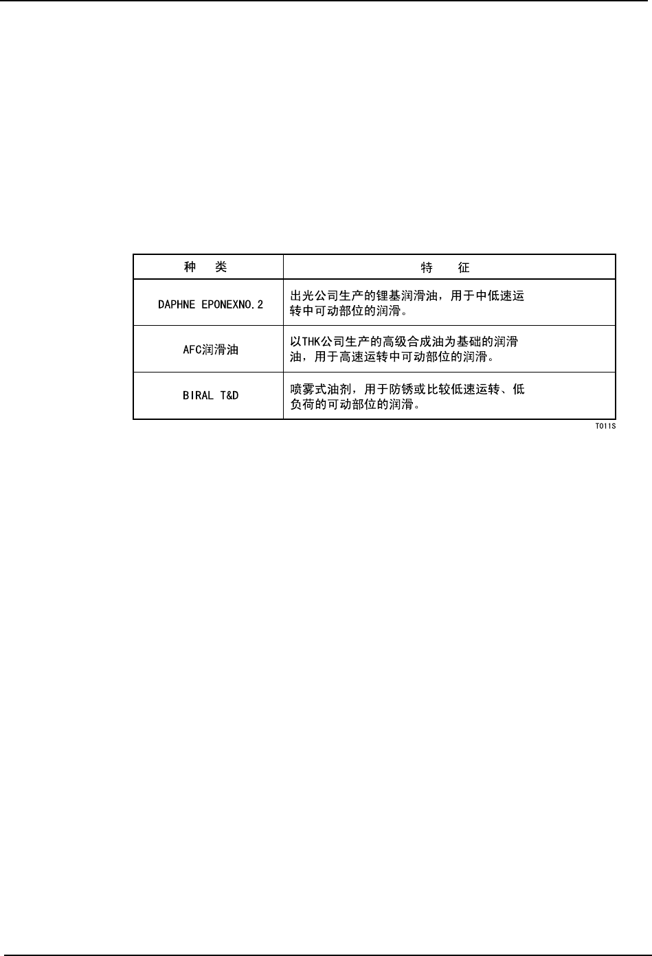 MEC-XP143-1.0S 4. 维修保养 XP-143E 机械手册 41 4.2 加油 4.2.1 加油时的注意事项 1. 操作前请务必切断主电源。 2. 请适量供应润滑油。当供应量过多 时,会引起飞散,成为污损电路板 和机器内部的原 因。特别是当沾染照相机镜头时, 则会成为影像处理错误等引起故障 的原因。在这种情 况下,请使用镜头清洁剂等擦拭掉 。 4.2.2 润滑油的种类 所使用的润滑油的特征如下 :