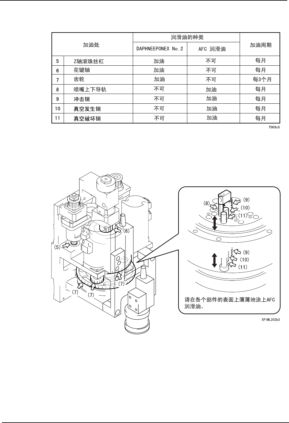 对 (8)、(9)、(10)、(11) 的详细加油方法,请参考后述的 「贴装工作头 ( 冲击销、真空