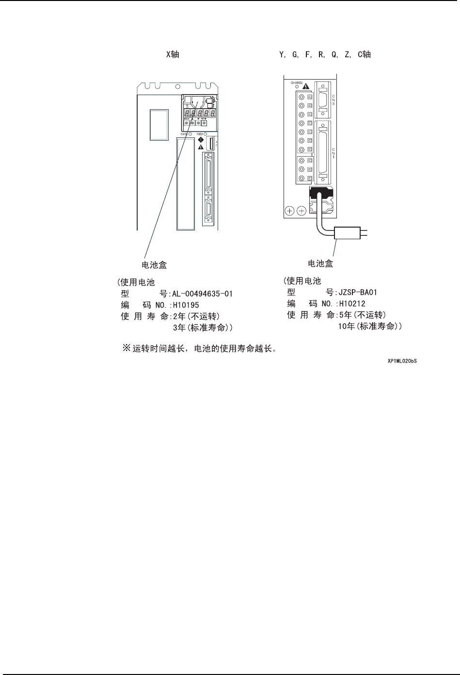 「AL A2」(X 轴 )、「A.830」(X 轴以外的轴 ) 后,有必要更换伺服放大器的电池。