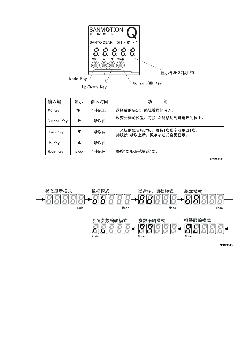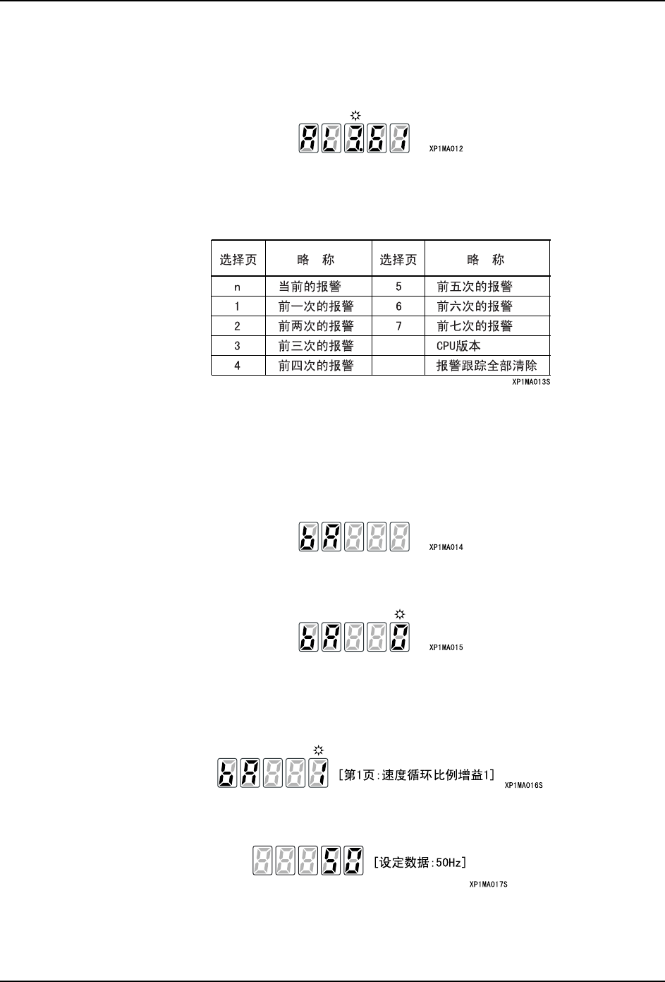 MEC-XP143-1.0S 5. 调整 XP-143E 机械手册 65 状态显示模式 1. 在此模式上伺服放大器的状态如下 表所示。 备注 ) 关于过载、再生过载、电池警告状态显示,有时会同时显示报警以外的显示。 报警跟踪模式 1. 多次按 Mode Key 直至显示 出 「 AL」 ,切换到报 警跟踪模式。 2. 自动切换到如下所示的 「页选择显示画面」的显示。