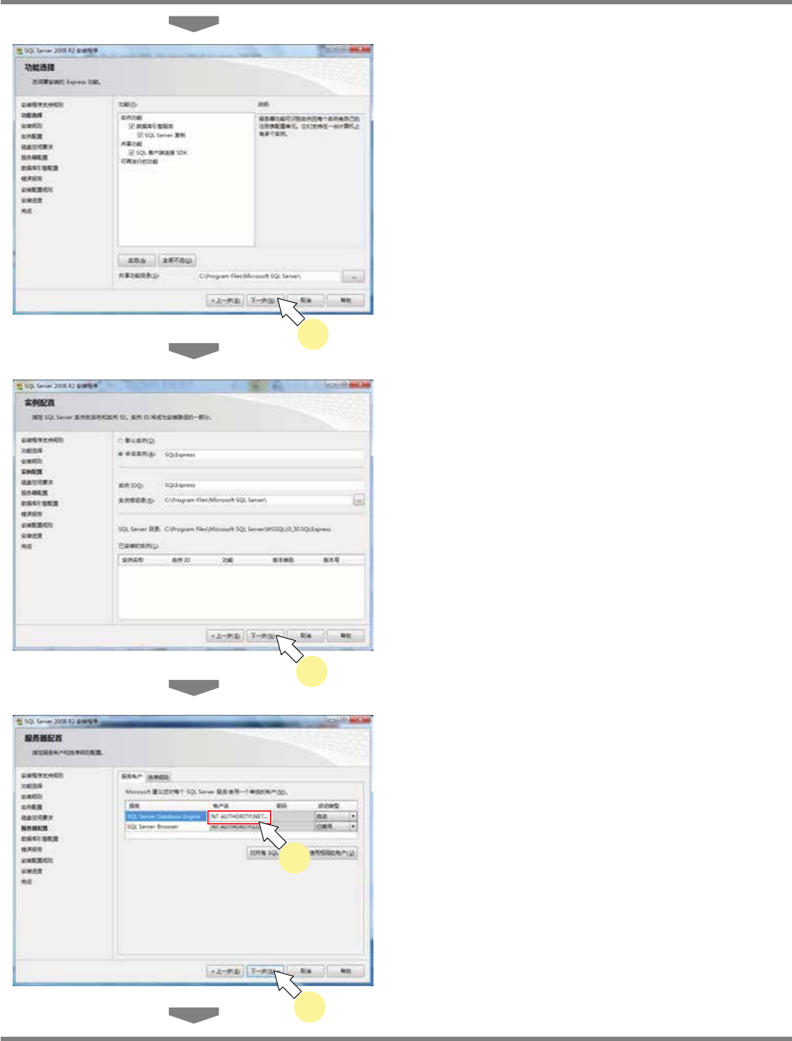 NPM-DGS ぁᓅᢁ߂ 2.1 NPM-DGS Ⲻᆿ㻻 Page 2-6 EJS9AC-MB-02P-03 4 ⛯࠱ [ сж↛ ] Ⱦ 5 ⛯࠱ [ сж↛ ] Ⱦ 6 䇴ᇐᑆᡭθ⛯࠱ [ сж↛ ] Ⱦ 䈭ሼ ‘ ᵃࣗ ’ Ⲻ ‘SQL Server Database Engine’ 䇴ᇐѰ ‘NT AUTHORITY\NETWORK SERVICE’ Ⱦ ( ᑆᡭሼՐᱴ⽰൞ࡍ㺞ѣθ䈭Ԅ ѣ䘿Ⱦ ) Install02…