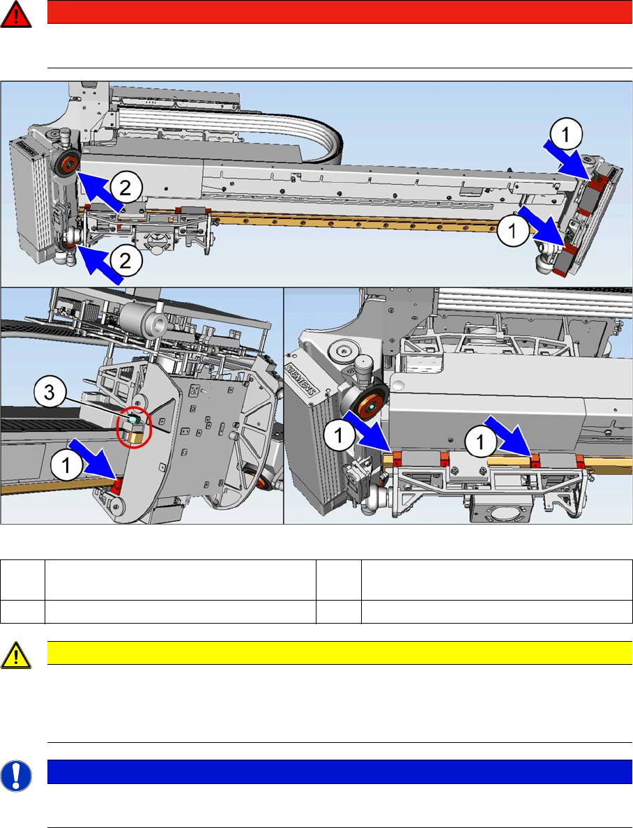 Das Lösen der Befestigungsschrauben der Führungswagen oder der Loslager führt zu Ver