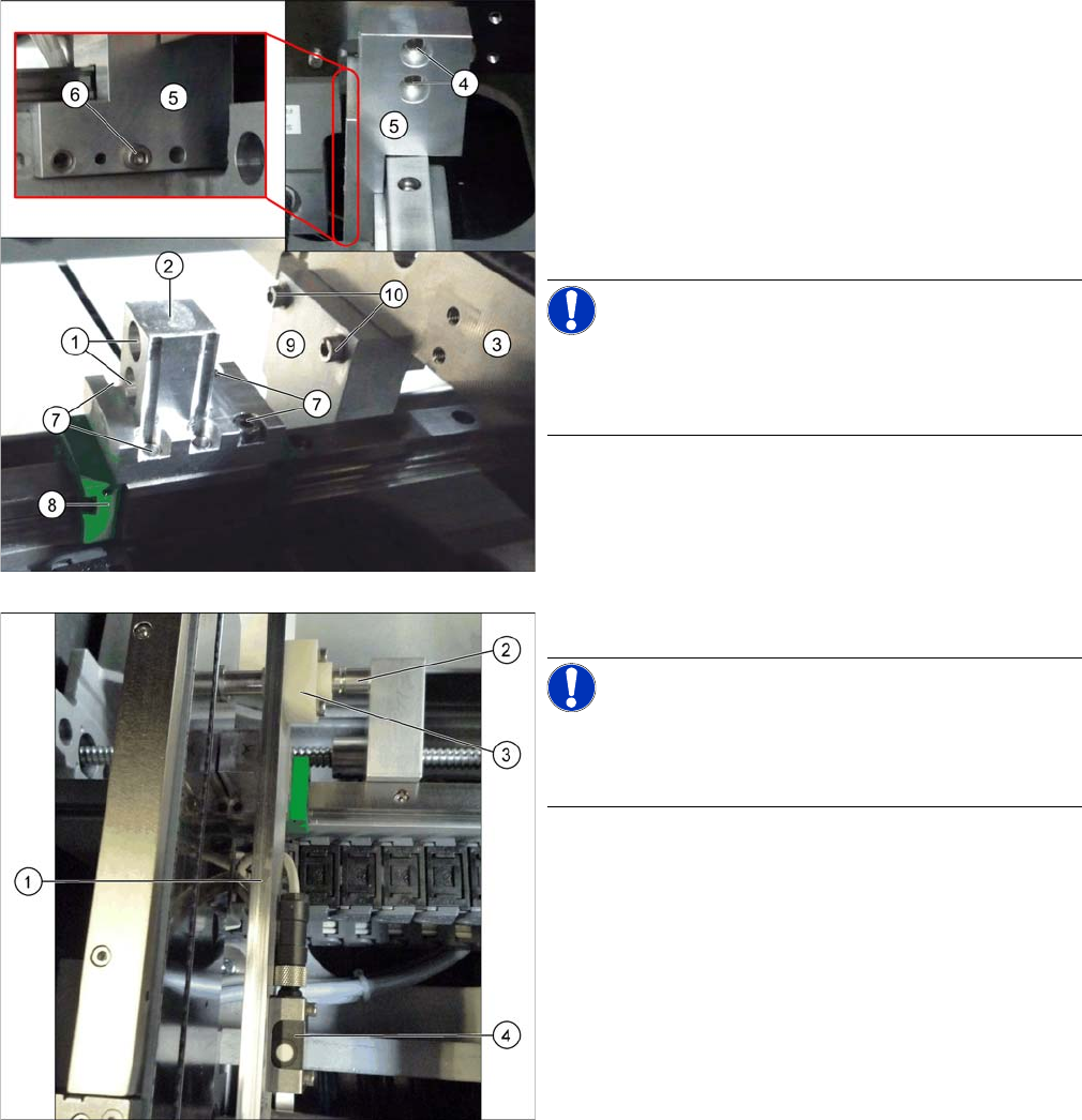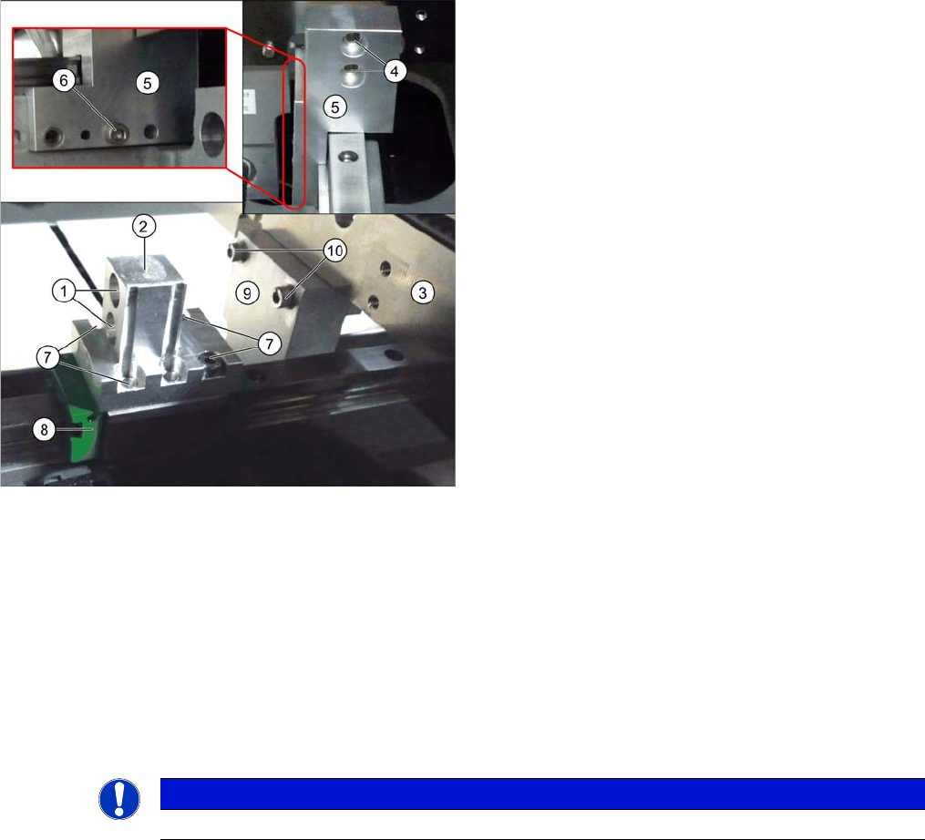 Servicearbeiten Transport 3.6.9 Feste Seite links/rechts umbauen (nur ET) 184 Serviceanleitung SIPLACE SX1/SX2/DX1/DX2 FS02 Umbau der Verstelleinheiten: ► Lösen Sie die Befestigungsschrauben (10) (2x zwei Stück) der beid…