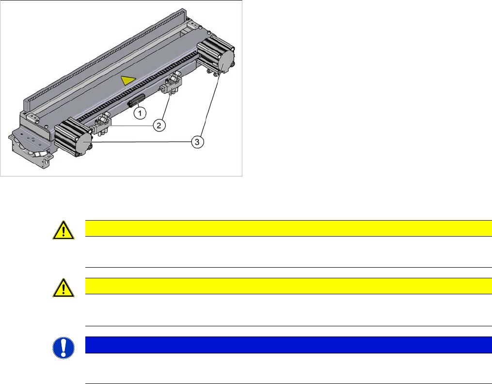 ► Hängen Sie die Gurtabfallrutsche aus. Beachten Sie hierzu den Abschnitt "3.10.10 Gurtabfallrutsche