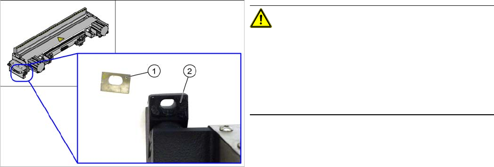► Hängen Sie die Gurtabfallrutsche ein. Beachten Sie hierzu den Abschnitt "3.10.10 Gurtabfallrutsche