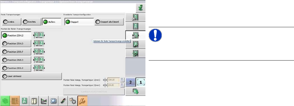 Die feste Transportwange wird beim Doppeltransport ausschließlich über die Software eingestellt.