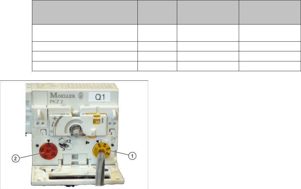 Servicearbeiten Elektrik 3.2.13 Mot orschutz-Auslöserblock (PKZ2) tauschen 54 Serviceanleitung SIPLACE SX1/SX2/DX1/DX2 FS02 Einbau Einstellungen des Motorschutz-Auslöseblocks Motorschutz- Auslöseblock Gelbe Einstellschei…
