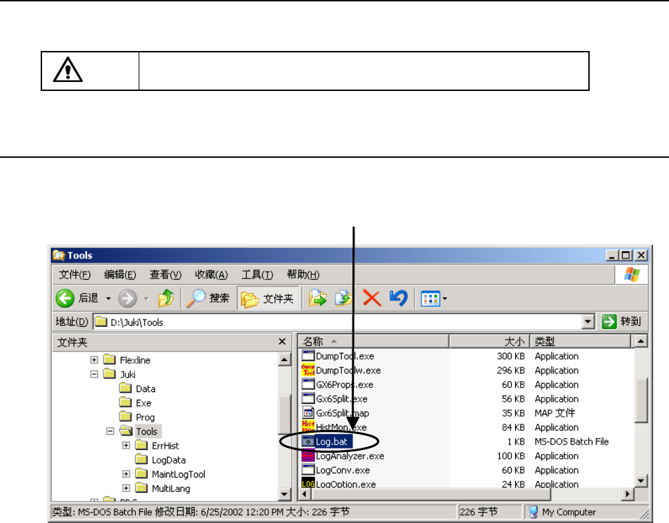 ② 从「D:\Juki\Tools」文件夹里,双击“Log.bat”(由于电脑的设置不同,有时不显示后綴 bat)。