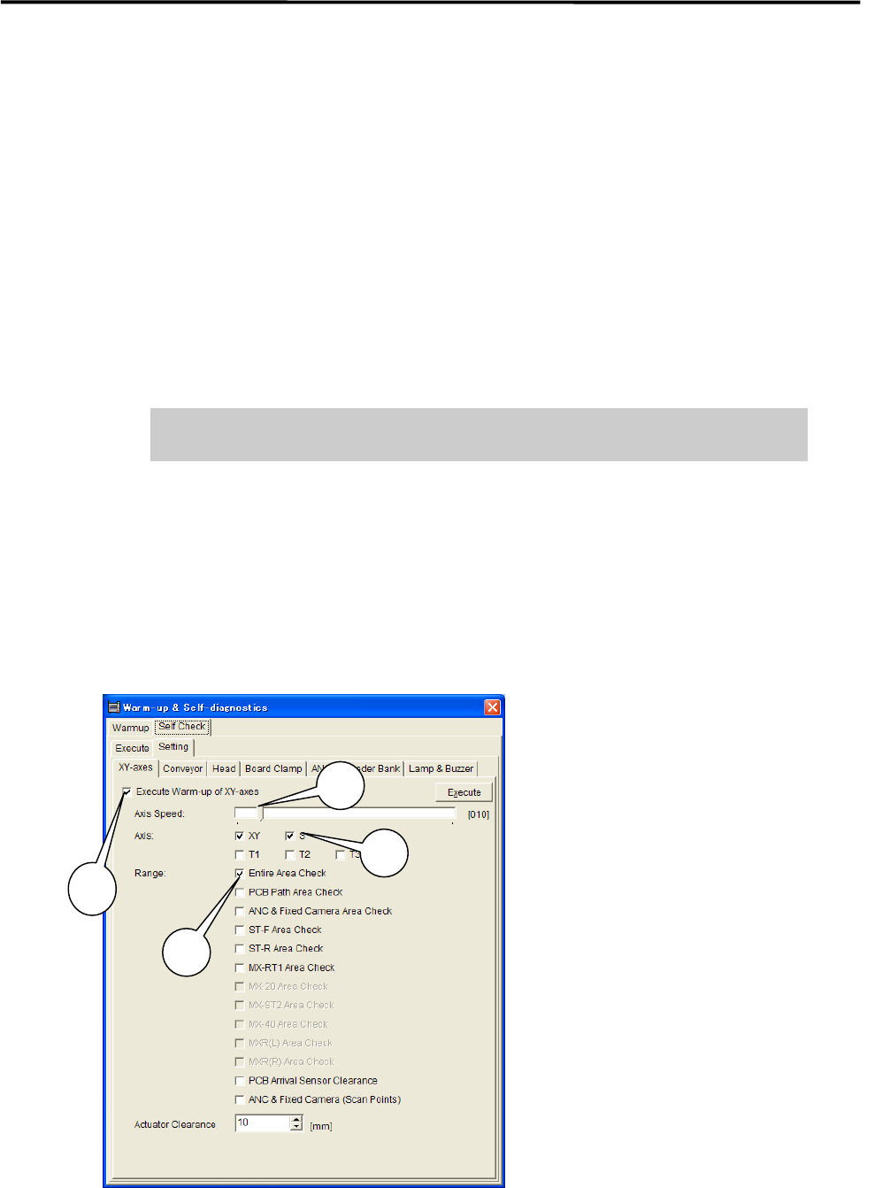 1 Installation 1-12 ⑤ Disable all the parameters in other tab fields than [XY-axes]. Rem ove a check mark on each parameters in [Conveyer], [Head], [Board Clamp], [ANS], [Feeder Bank], and [Lam p & Buzzer] (tabs may …