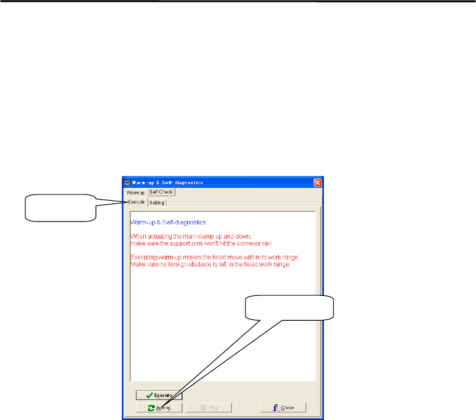 bottom of the window. Clicking the <Execute> button enables to perform warm-up only a single