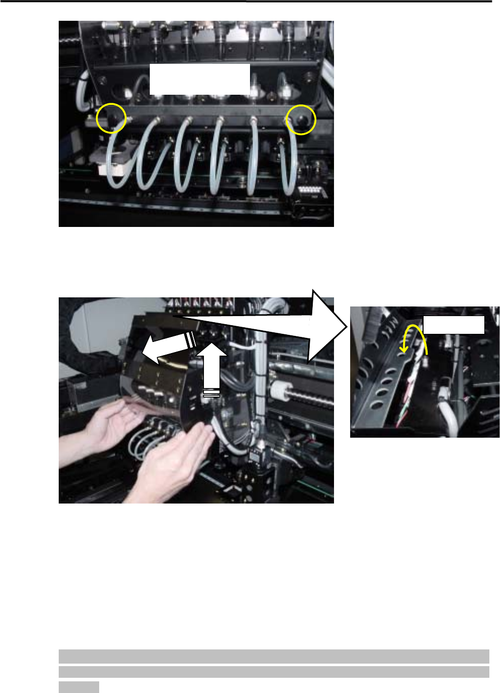 NOTE: Before removing the head cover unit, the main power to the machine must be turned OFF and protective
