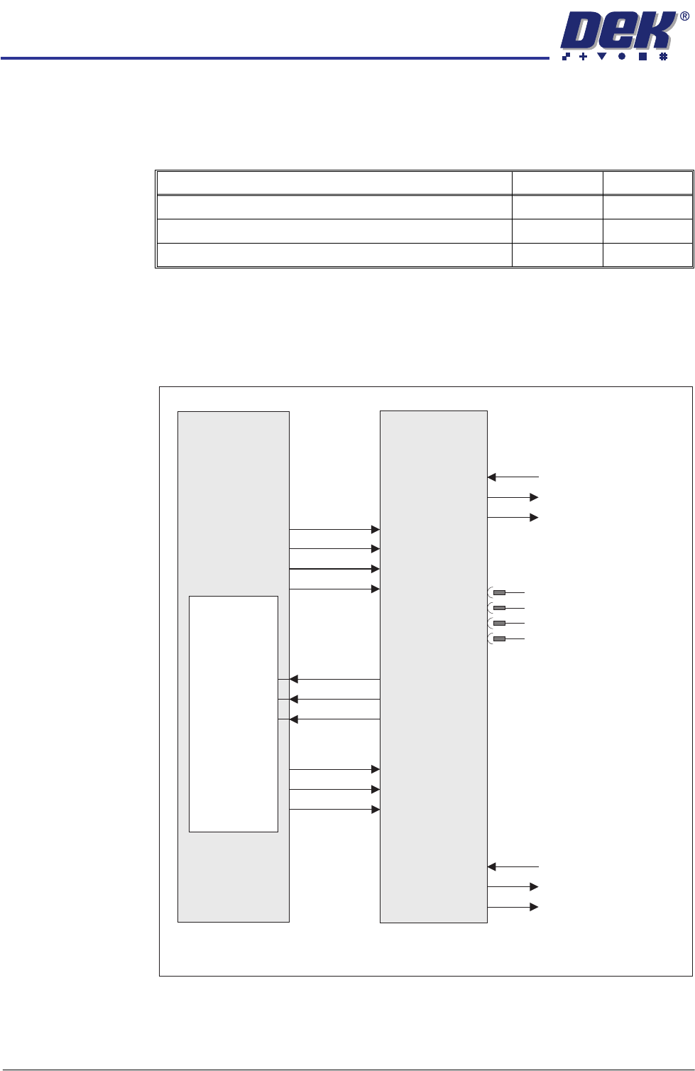 Signal lines to and from the DEK machine
