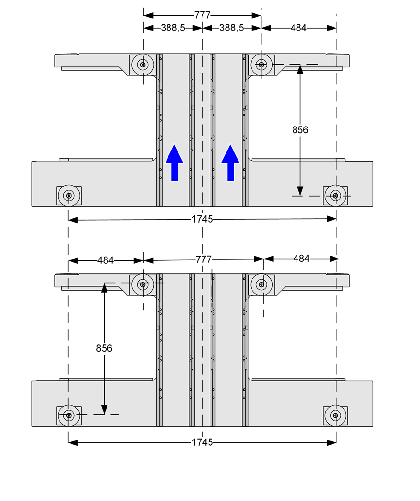 (1) Holes for the transport heights of 900, 930 and 950 mm.