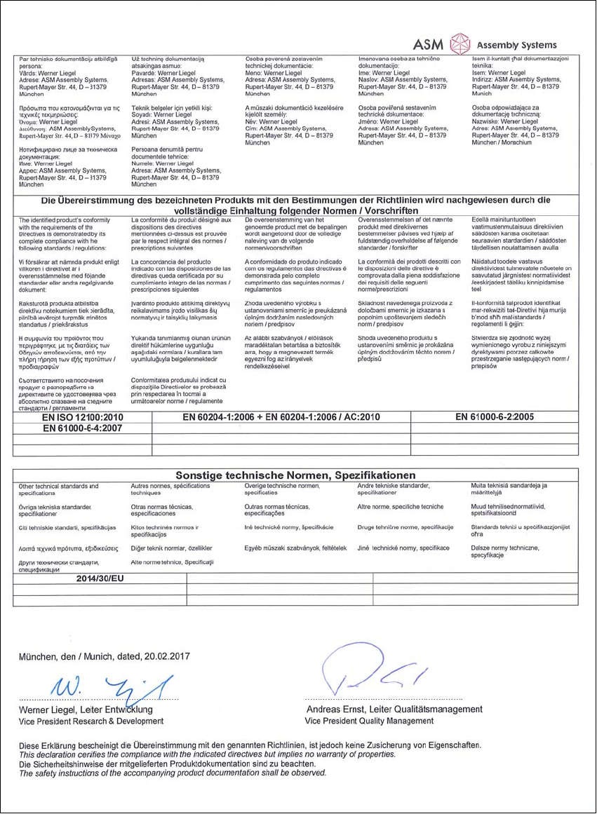 User manual SIPLACE TX-Series 8 Annex From software version 713.0 Edition 01/2020 8.1 EC Declaration of Conformity 333 8 Fig. 8.1 - 13 SIPLACE TX2i micron 15 μm (588515) - page 2