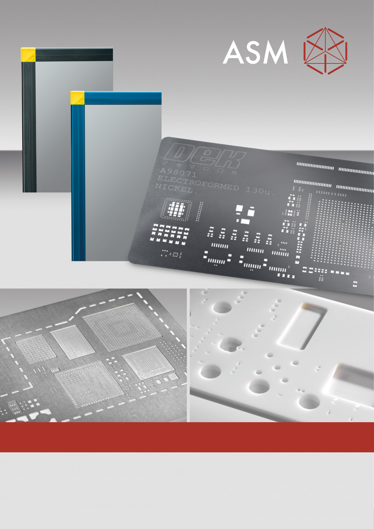 ASM: Schablonen von der weltweiten Nr . 1 ASM Schablonennetzwerk 13 ASM Schablonentechnologien DEK Fine-Grain-Schablonen 14 DEK Stufenschablonen 15 DEK Electroform-Lösungen 16 DEK Electroform-3D-Schablonen 18 DEK Electro…