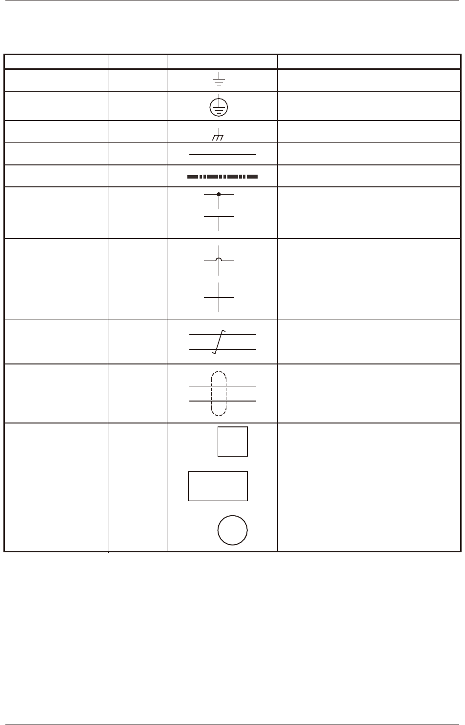 4-1-1 5OM-1839 1603-001 電気回路図で使用する記号 電気回路図で使用する記号 接地(一般) 保護接地 接続(シャーシ) ケーブル 光ファイバーケーブル 接続 交差 ツイストペア 名 称 記 号 図 記 号 備 考 ブロック図の信号線のみ W を表記します。 ケーブルの電気的接続を表します。 ケーブルは電気的接続されません。 信号線のツイスト(撚り合せ)を表します。 シールド線を表します。 シールド(遮へい) 機器ま…