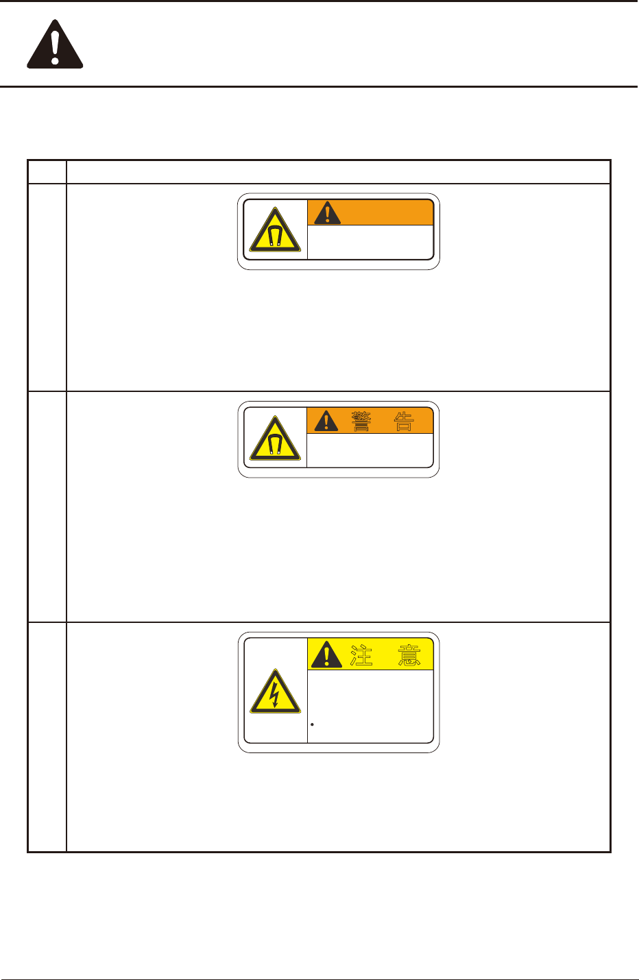 No. 警告ラベルと説明