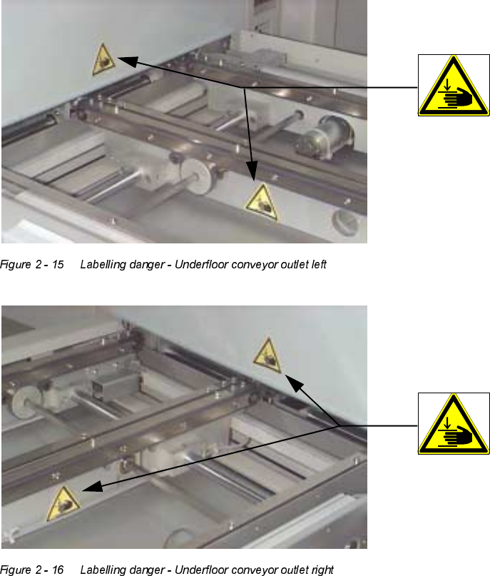 2 Safety User M anual V 1.15 - P roductivity Lift 2.6 Attaching safety st ickers Software version V 40.1 1 Edition 01/2001 22 8QGHUIORRUFRQYH\RU