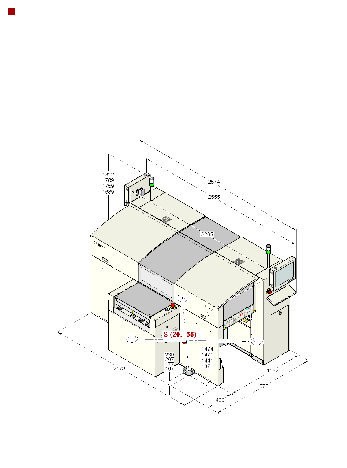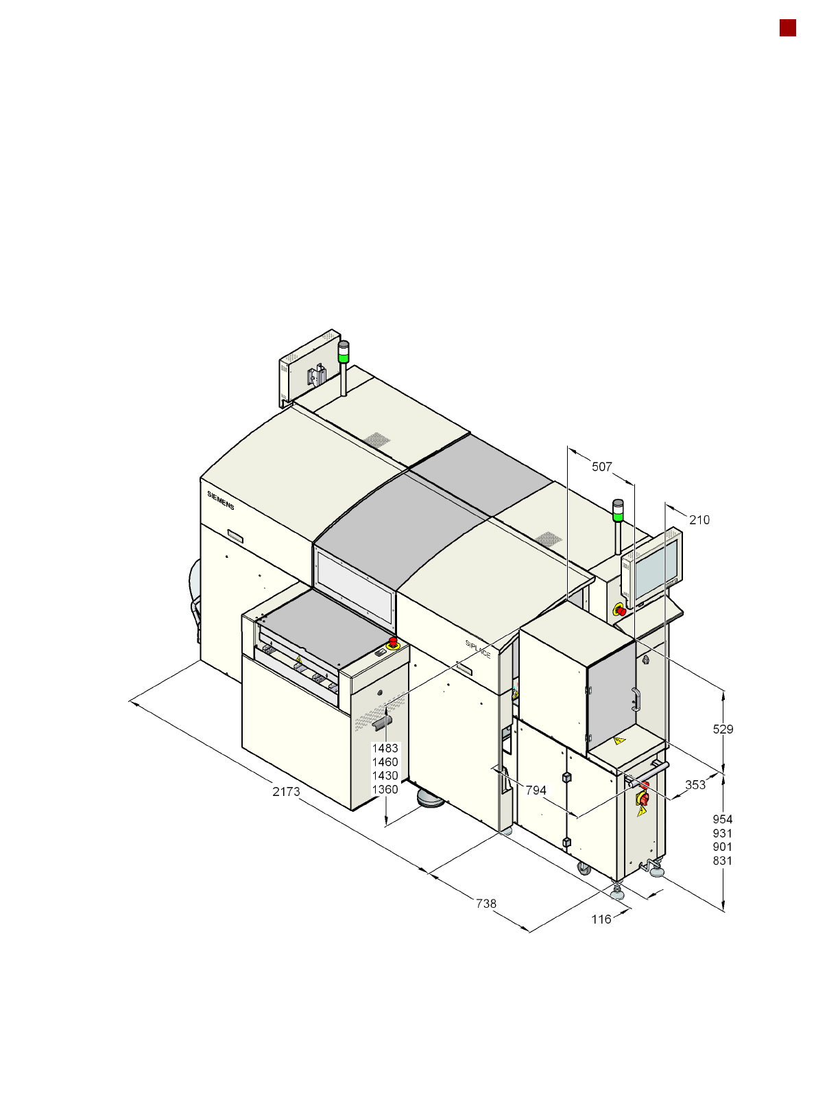 Machine ground clearance 107 mm (PCB conveyor height 830 mm)