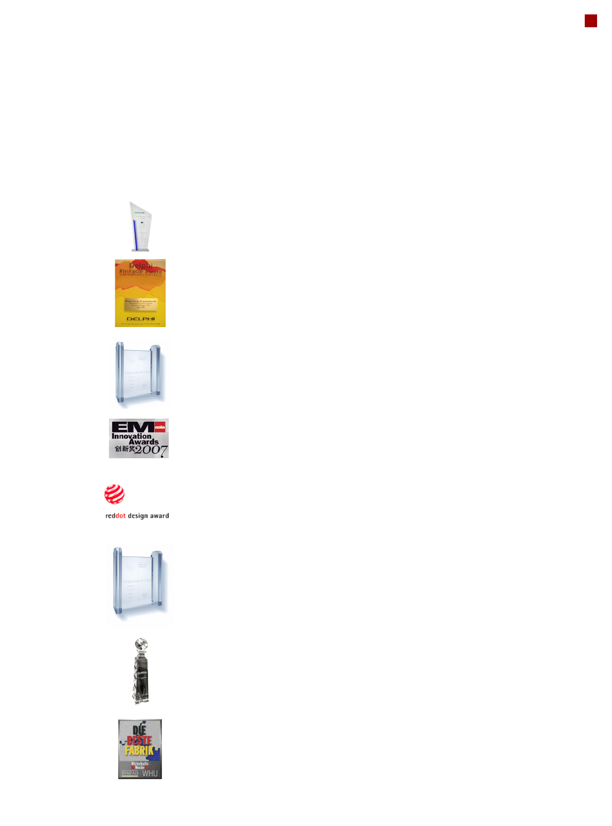51 Awards Best Supplier Award VDO Category "Production Equipment" Delphi Pinnac le Award Delphi With the award the Delphi selectio n committee appreciated the long-time and exceedingly successful cooperation wi…
