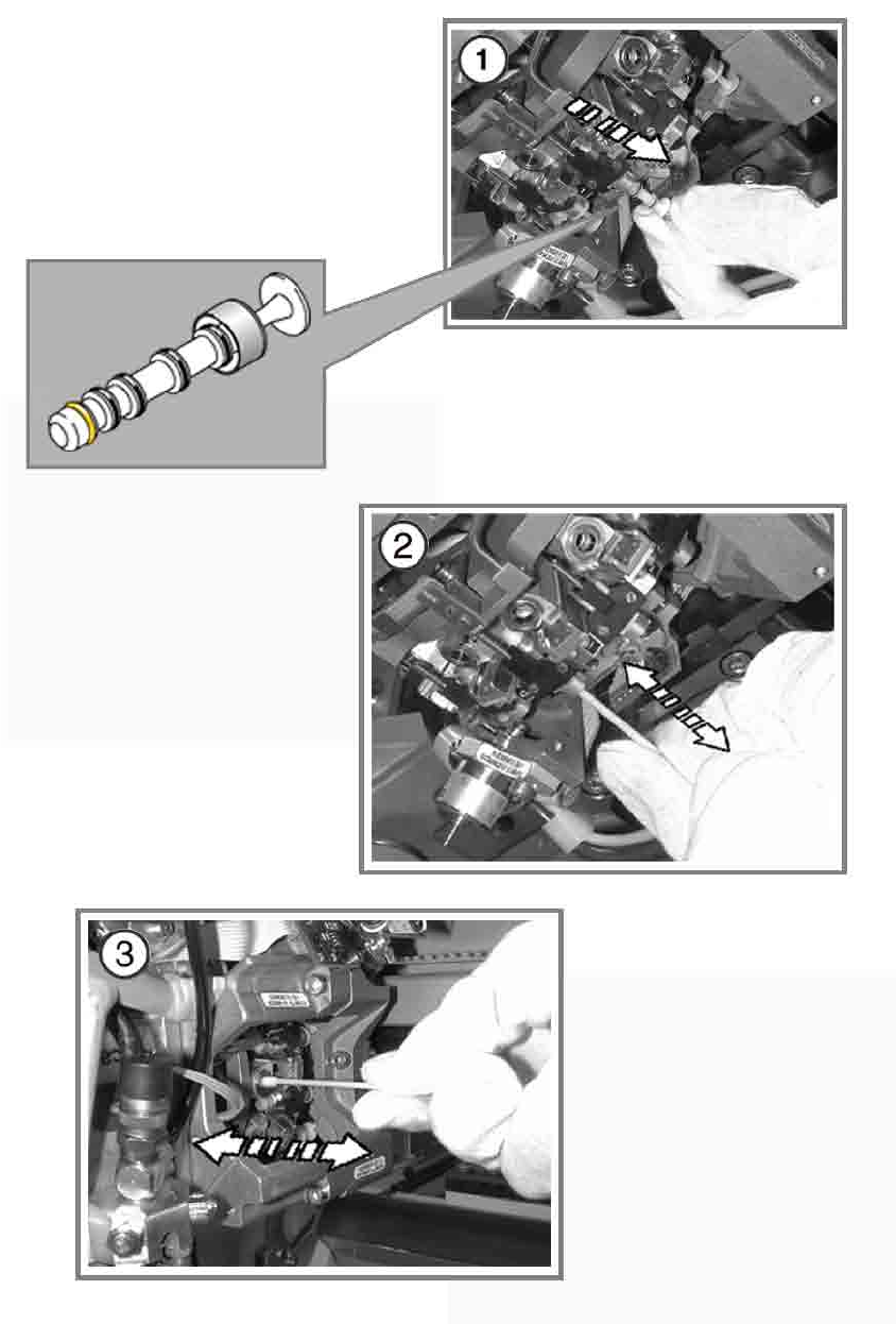 s Reinigen Sie die Ventilgehäuse mit einem mit Äthylalkohol benetzten Reinigungsstäbchen.