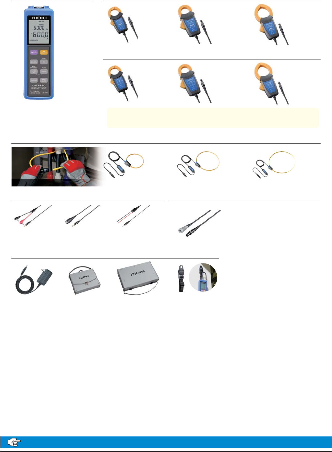 AC/DC 自动调零电流传感 器、AC/DC 电 流 传感器与显示器单元、输出线组合可对存储记录仪、数据采集 仪等进行输出。 附件 : 5 号碱性电池 (LR6)2 个,保护壳 ( 安装 于主机 ),使用说明书 CT7731 CM7290 CT7631 CT7044 L9094 香蕉端子用 AC 适配器 9445-02 携带包 C0220 可收纳传感 器1个/显 示器单元 1 个 /AC 适 配器 / 输出线 可收纳传感 器3个/显 示…