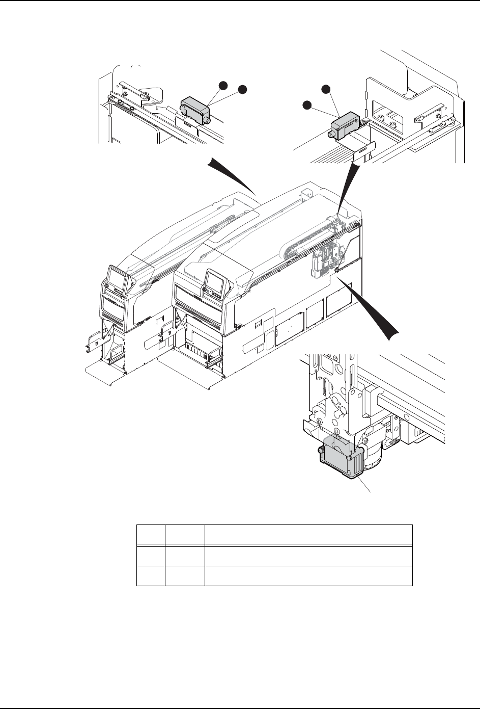 3. 传感器配置图 MEC-NXT3-004S0 86 NXT III 机械手册 3.11 电路板高度测定传感器 No. 地址 信号名 1 Y00A 电路板高度传感器 _ 零位移 2 Y00B 电路板高度传感器 _ 激光投射停止 L L R 01MEC-1382 2 1 2 1 PH2