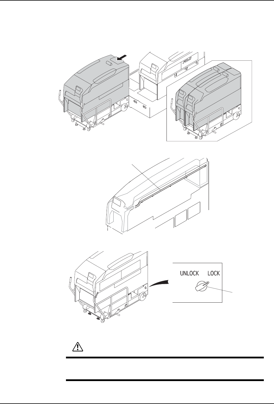 注意 )使用 MCU时, 请使用脚轮的刹车。要停止装载了模组的 MCU 时,请务必使用脚轮的刹车。