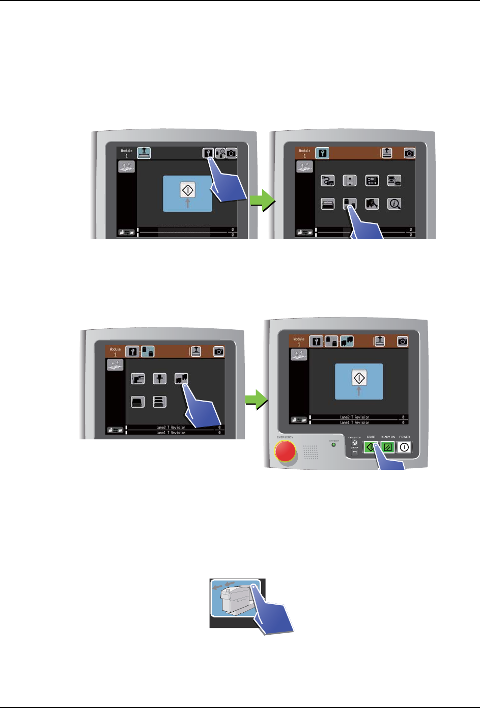 1. 按下 CYCLE STOP 按钮停止模组运转、使其处于 START 等待状态。