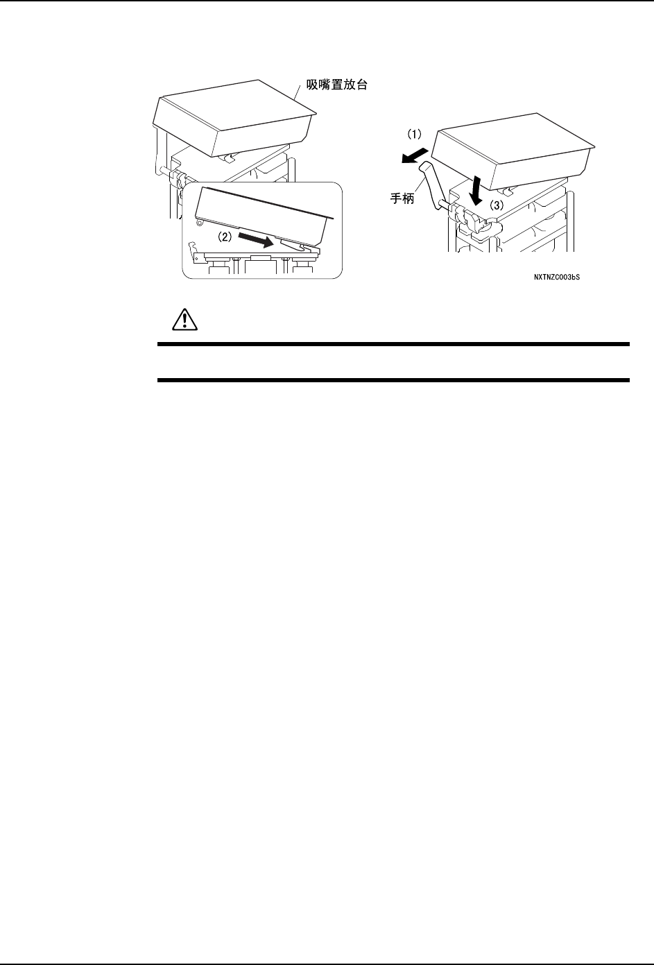 在将吸嘴置放台压入时请注意不要夹住手指。