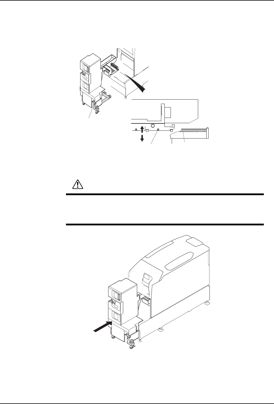 4. 基本操作 MEC-NXT3-004S0 148 NXT III 机械手册 4.8.4 安装方法 1. 将料盘单元 -LTC 配置在模组前面。 2. 将料盘单元 -LTC 的滚轮与料站基座的沟槽对齐, 旋转手柄进行调整。 3. 慢慢地将料盘单元 -LTC 压入模组内。请确实压入到最里面。料盘单元 -LTC 自动地锁定 在模组上。 警告 在将料盘单元 -LTC 压入机器时,请确认料盘单元 -LTC 和基座之间是否有 别的操作者。存在在…