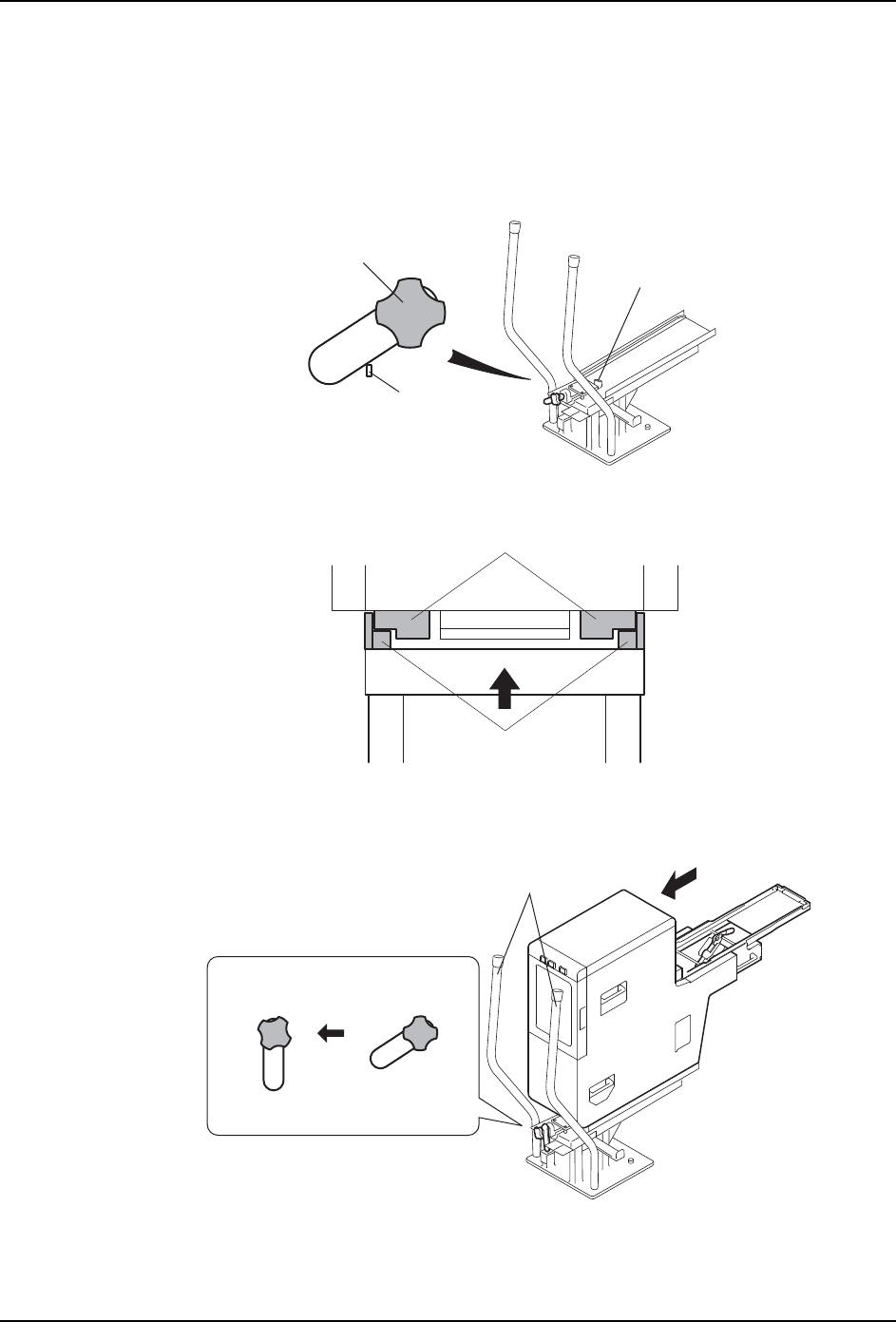 3. 使料盘单元 -M 的往复臂的前端部高出料站托架的供料器接插部。( 这个时候请参考台车