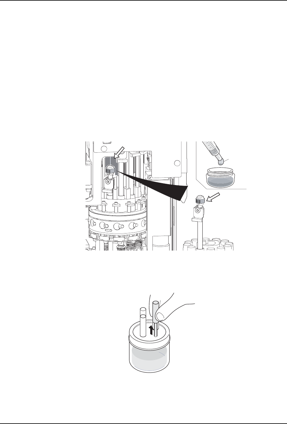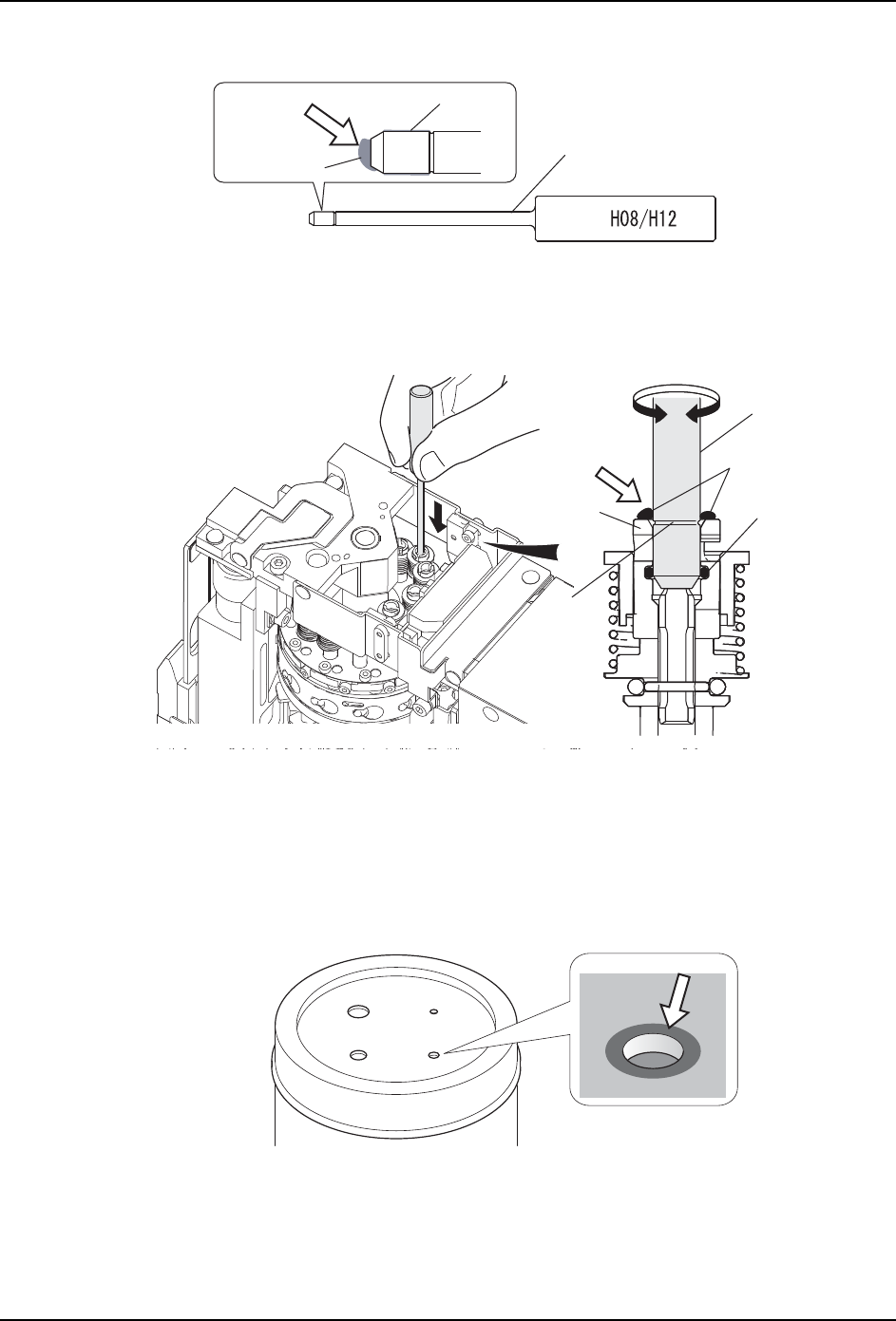 a. 在升降杆内 O 型圈加油治具上放入指定的润滑油,插入涂敷用注油棒。