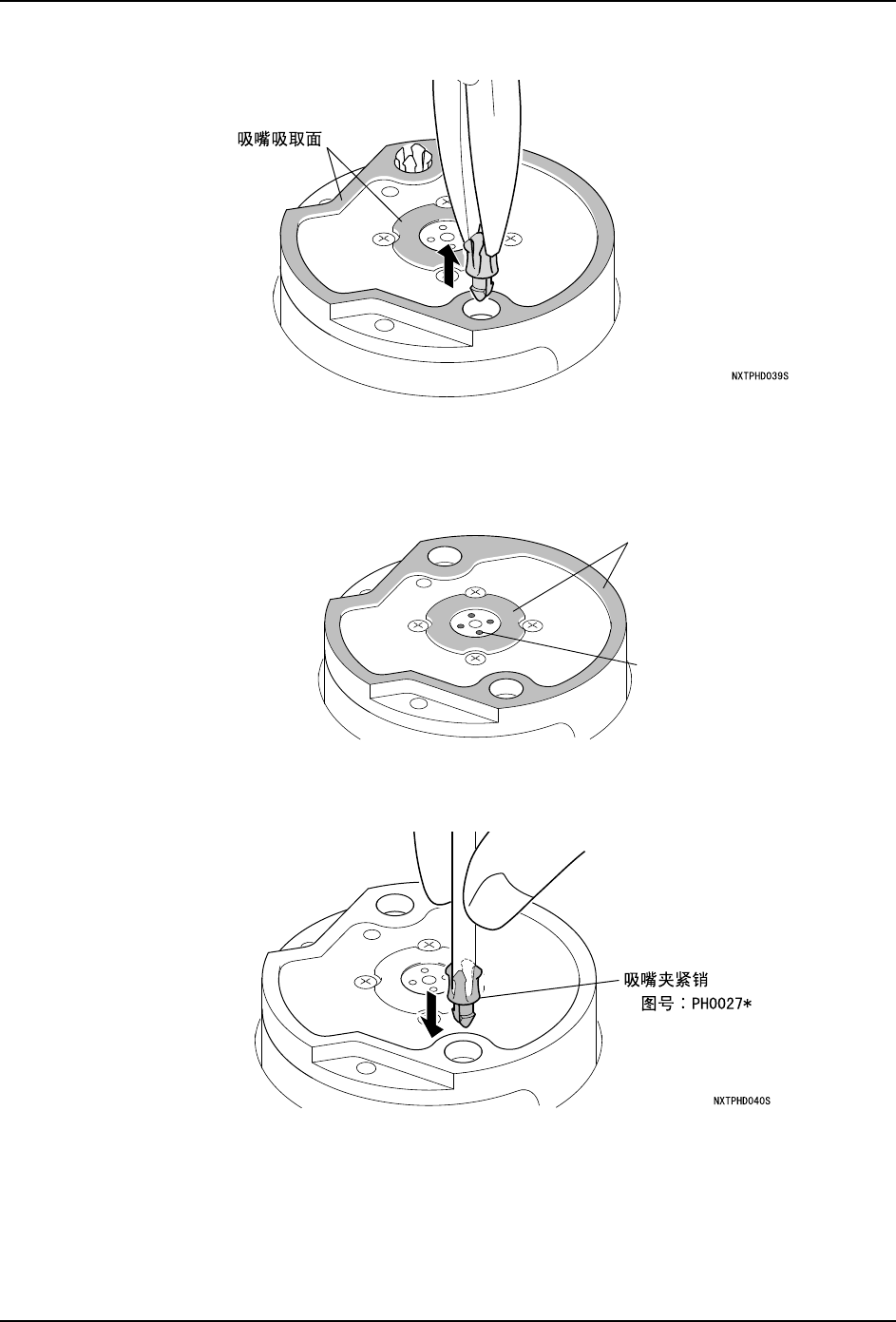 4. 吸嘴夹紧销在吸嘴吸取面上有 2 个。请将另一个吸嘴夹紧销也同样拆下。
