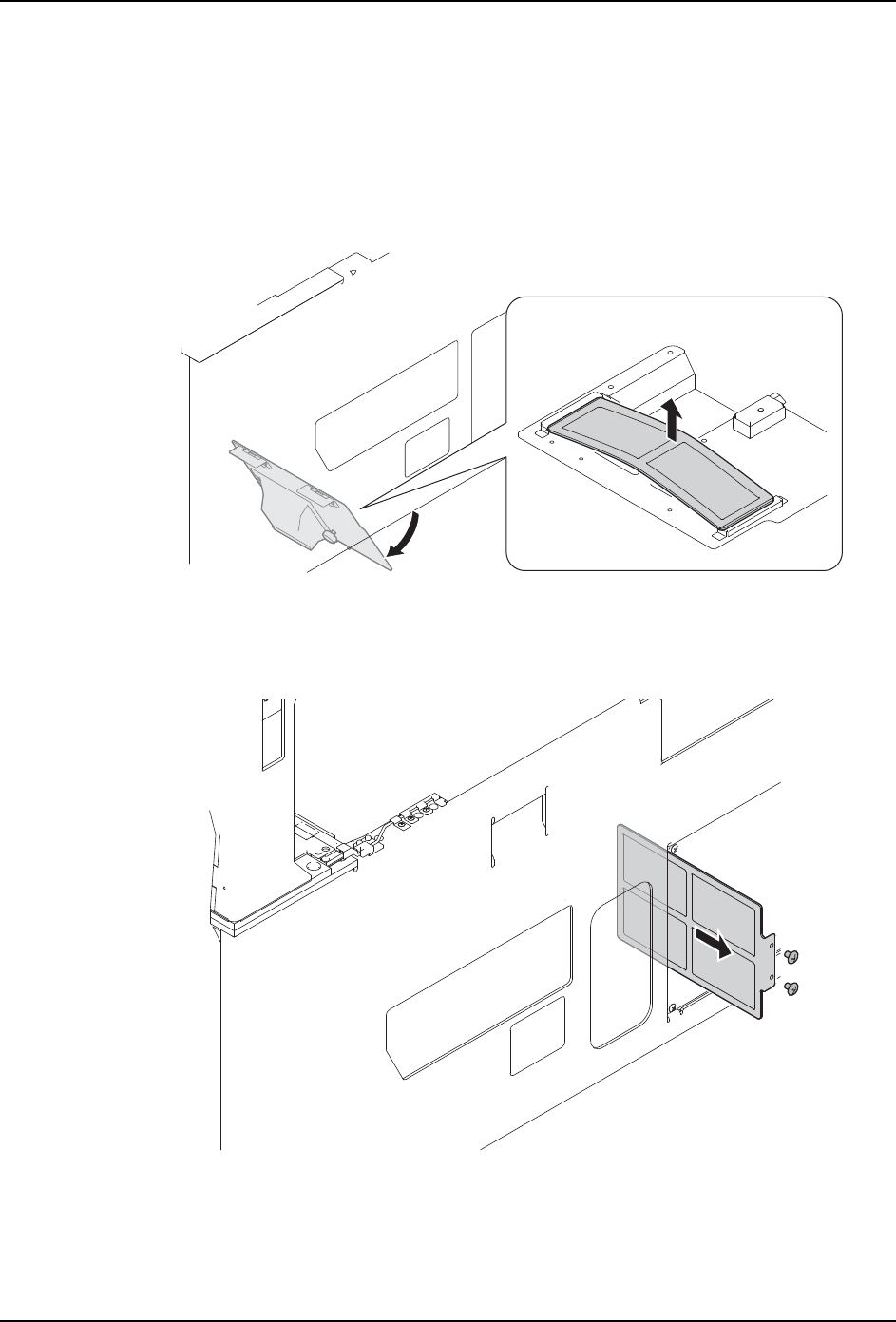 b. 请一边轻轻地弯曲过滤器的框架一边取下螺丝后拉出过滤器。