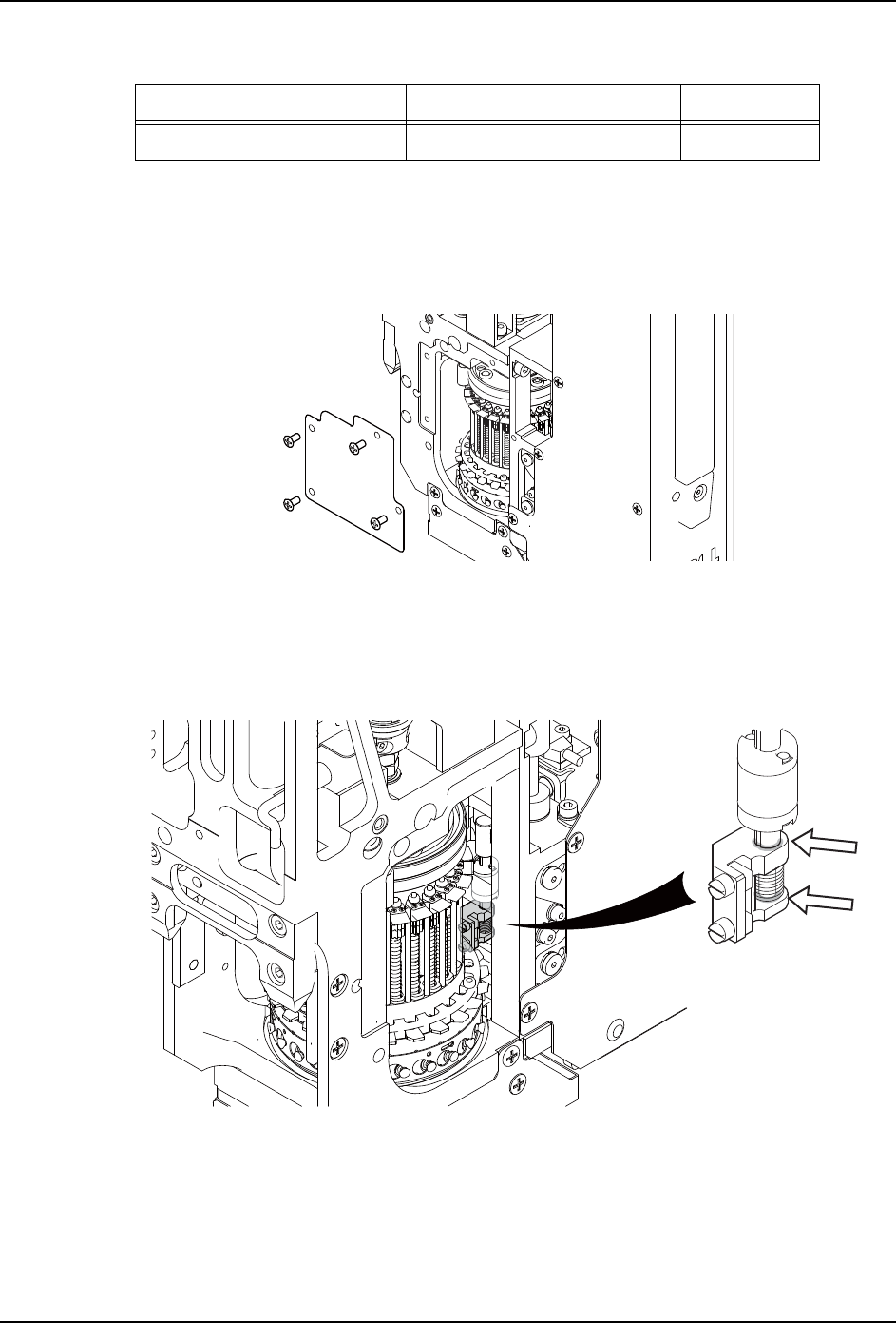 MEC-NXT3-004S0 5. 预防保养 NXT III 机械手册 227 5.8 每 6 个月 (4000 小时 ) 的操作 5.8.1 机械阀驱动用转臂旋转轴的加油 〈H04/H04S/H04SF/H08/H08Q/H08M/H08 MQ/H12HS/H12HSQ/V12 工作头〉 备注 )对 于加油量少的加油 作业,推荐使用治具的注射筒 (S61439) 。在注射 筒上有刻度, 请作为加油量的基准。 1. 拆除贴装工作头。 (…