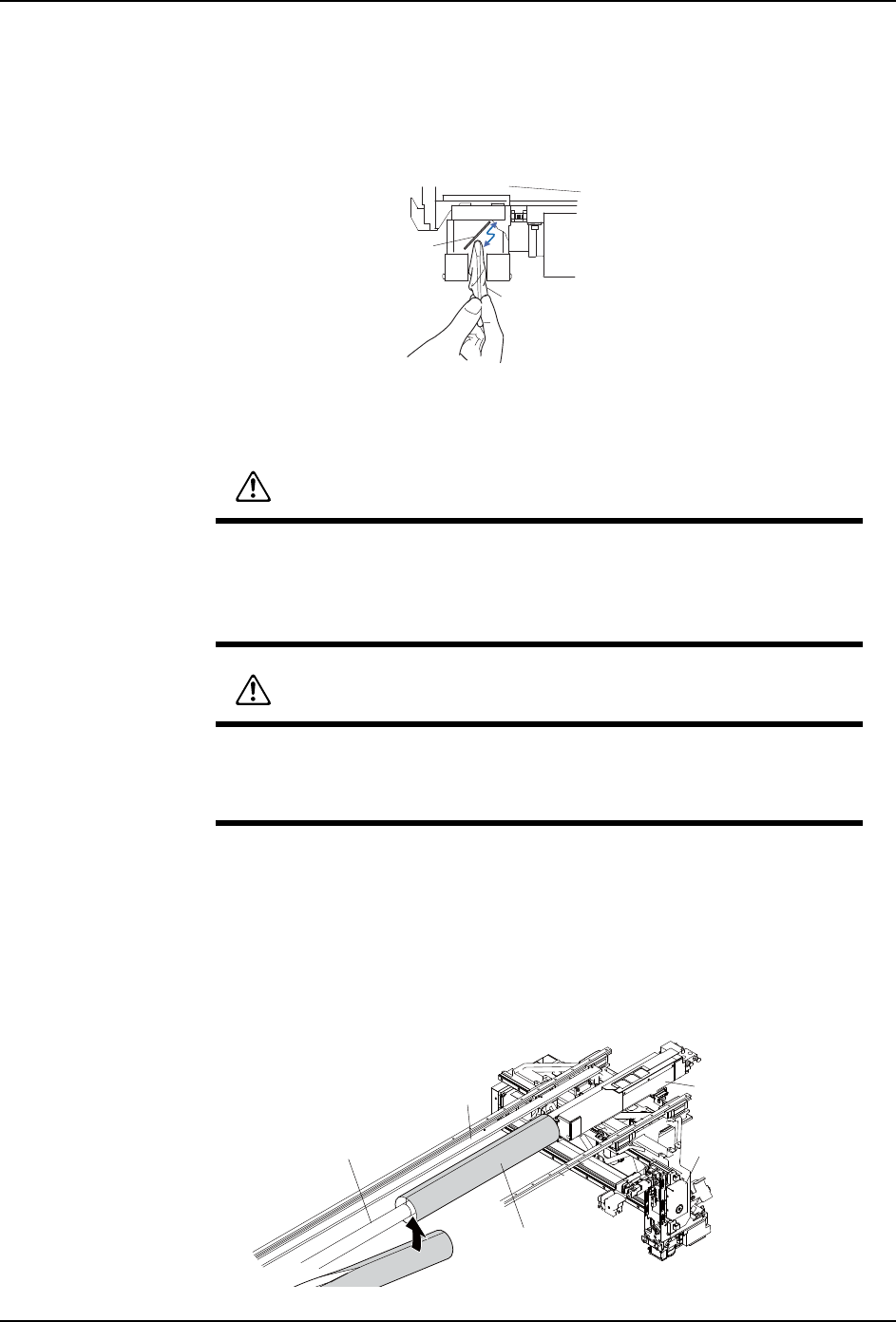 要接近线性马达的轴或者线圈部分 (请离开 400mm 以上进行操作)。有可