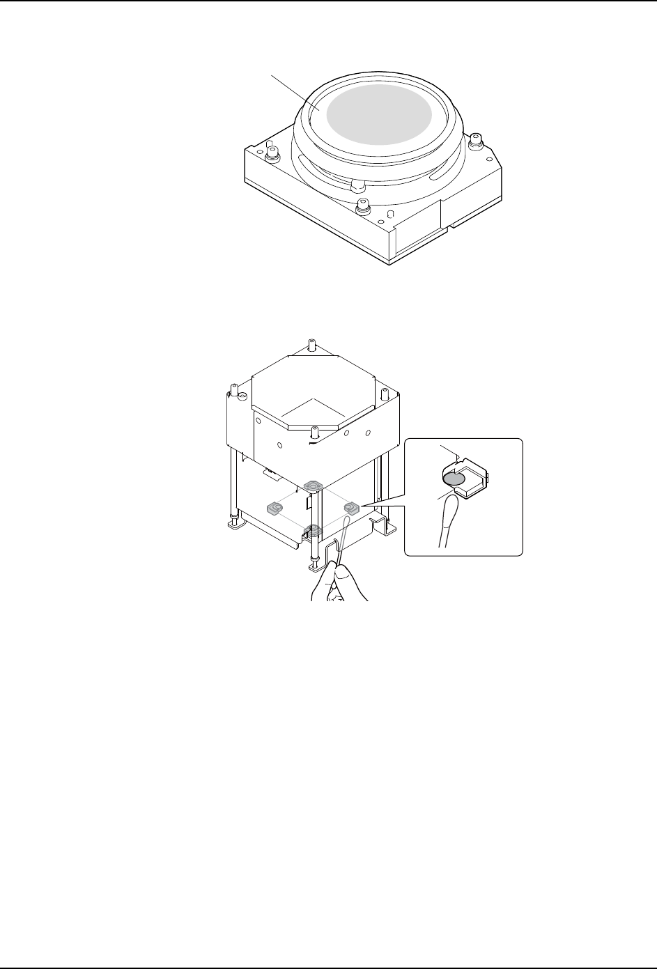 9. 请使用干净的绵棒擦去照明单元下部的镜头 (4处)粘附的尘埃和污垢。