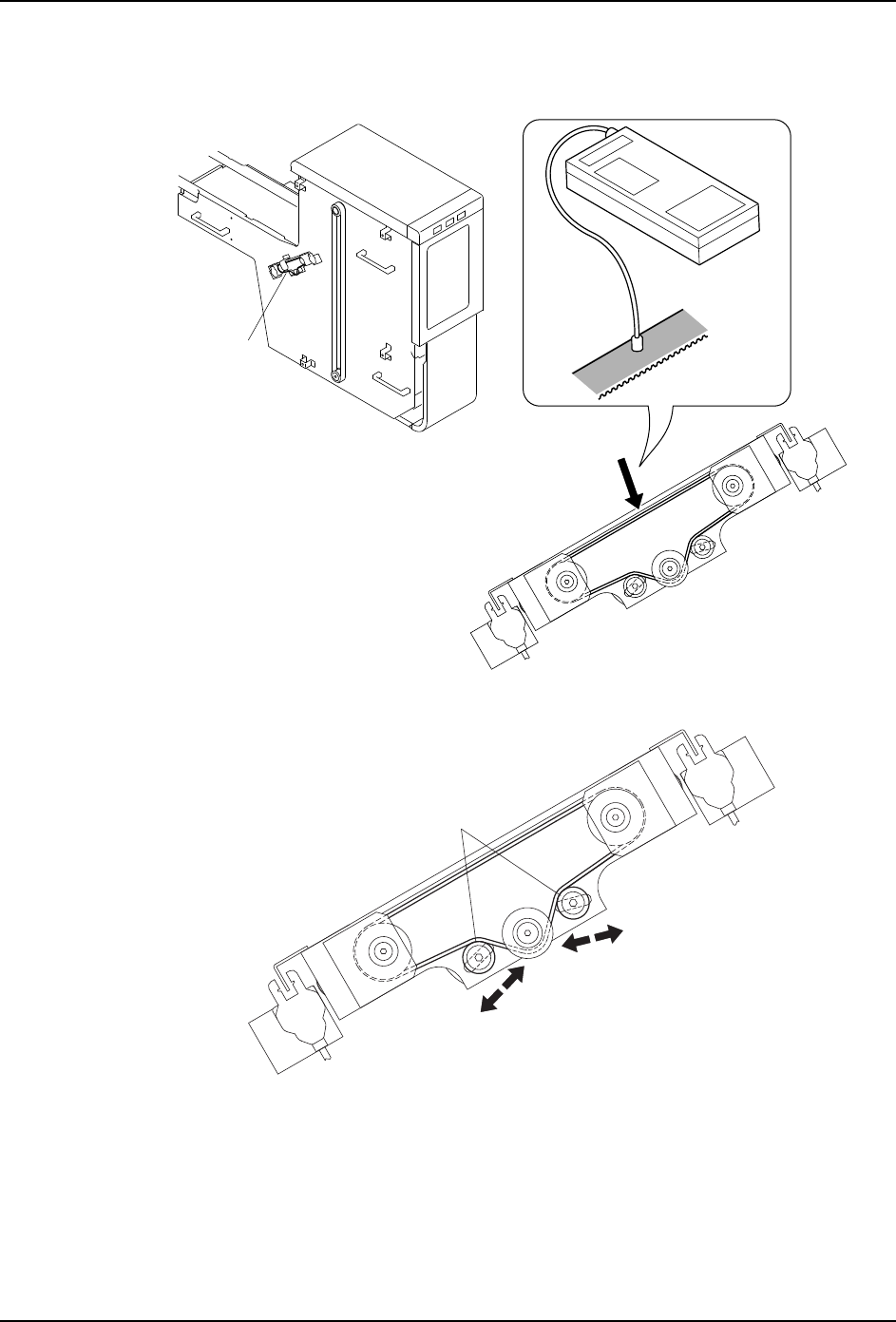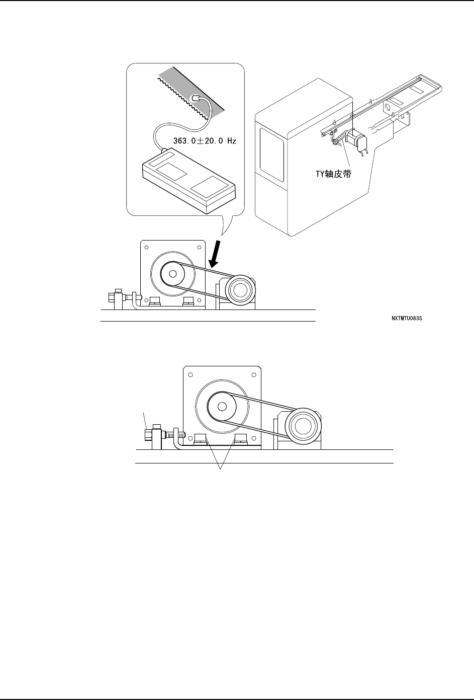 1. 请测定皮带的张力。确认在跨距最长的皮带中央的测定值是 60.0±3.0Hz。