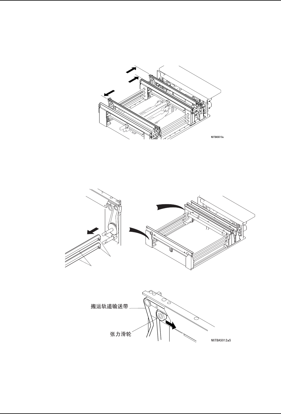 7. 取下锁定板,更换传送带。更换传送带后,请调整传送带张力。参考 「5.10.17 搬运轨