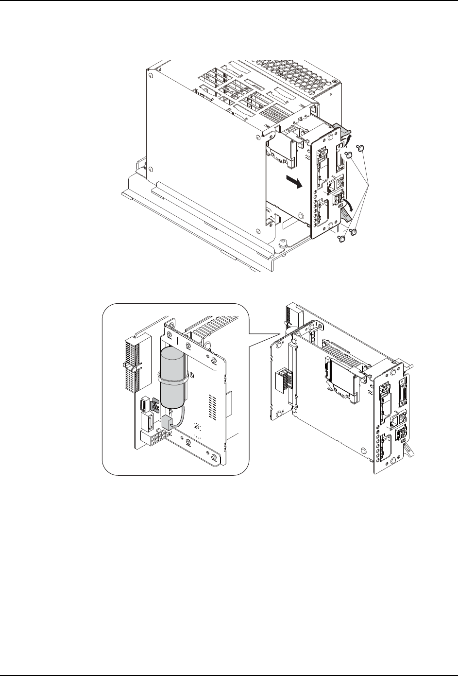 MEC-NXT3-004S0 6. 消耗品的更换 NXT III 机械手册 373 8. 请拆除固定 CPU 电路板的螺丝 (4 根) 。 9. 请拉手柄,拉出伺服电路板。 10.在 CPU 电路板后方有电池 。请拆除绑扎带 和接插头,更换成新 电池。 11.更换电池后,按照与拆除相反的顺序组装 C PU 箱并将其按原状返回到机器上。 备注 )在导线和 CPU 箱上, 各自用数字和字母记载了插头名字。 请与插头名字一致进行连接。 12.…
