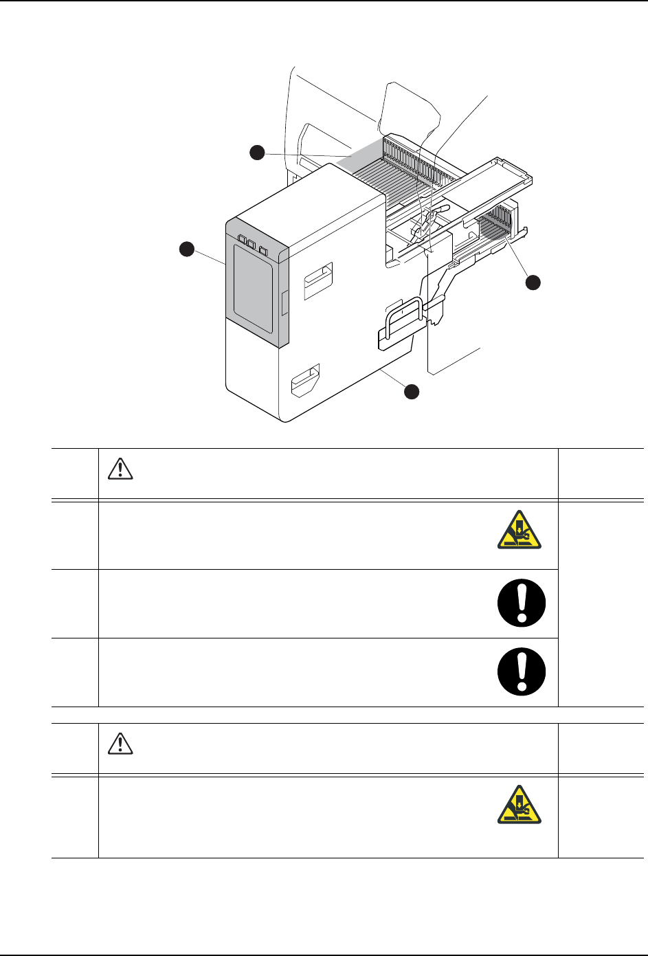 42 在自动运转时,请不要将手伸入机器本体与料盘单元 -M 侧面