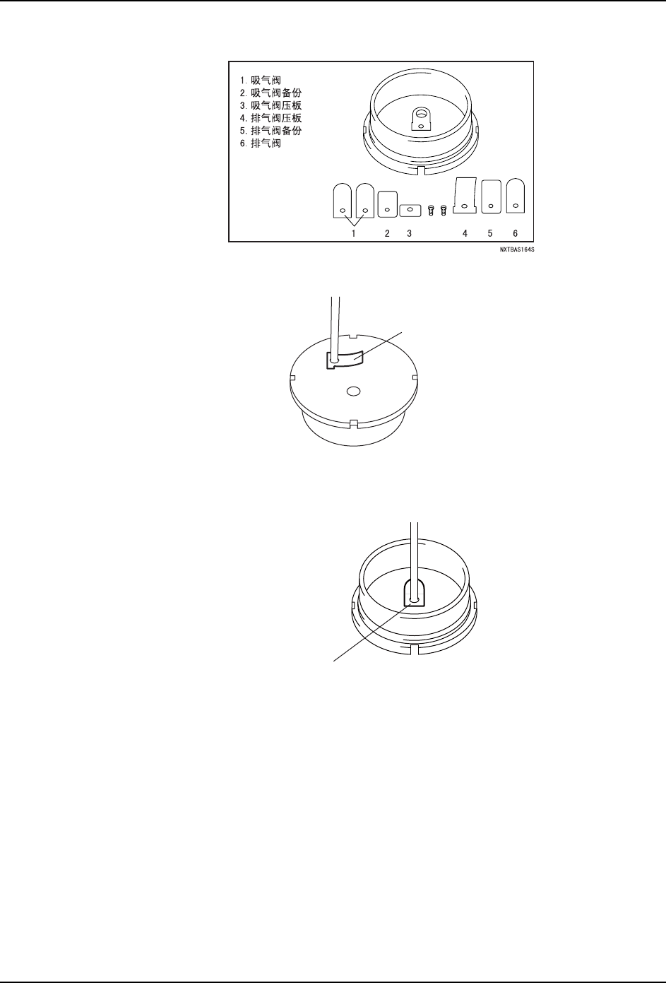 a. 在气缸上放置排气阀。将吸气阀备份以及排气阀压板重叠。