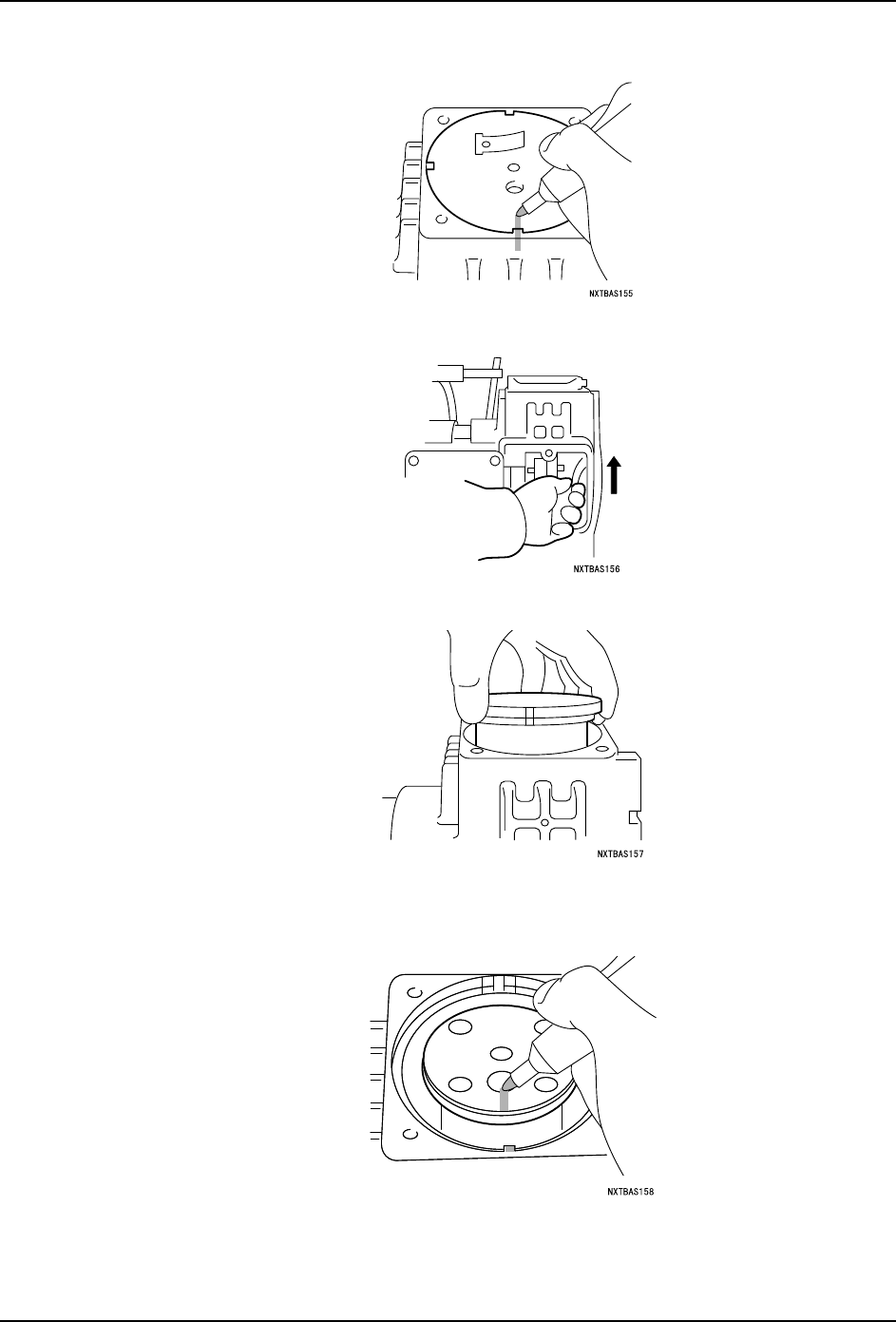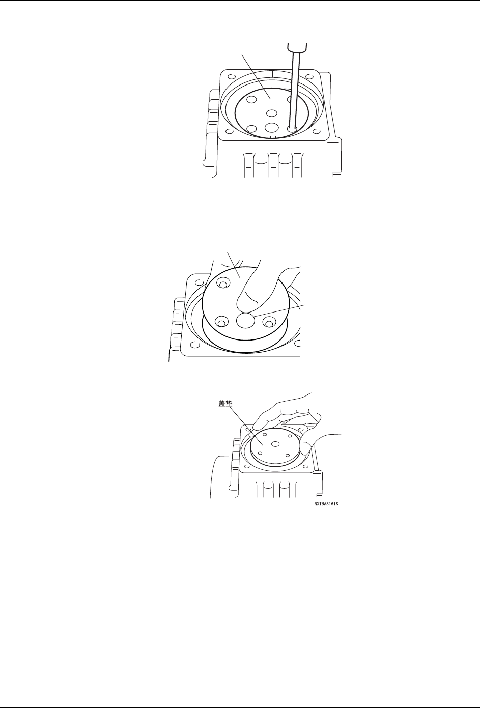 MEC-NXT3-004S0 6. 消耗品的更换 NXT III 机械手册 419 a. 在拆下汽缸前,用油性笔在外壳和汽缸上 做标记。 b. 用戴有手套的手,满满地将风扇向上旋转 。此时,请必须戴手套。 c. 将汽缸向上拔起。 5. 拆下压板和盖垫。 a. 对准外壳的标记部,用油性笔在压板上做 标记。