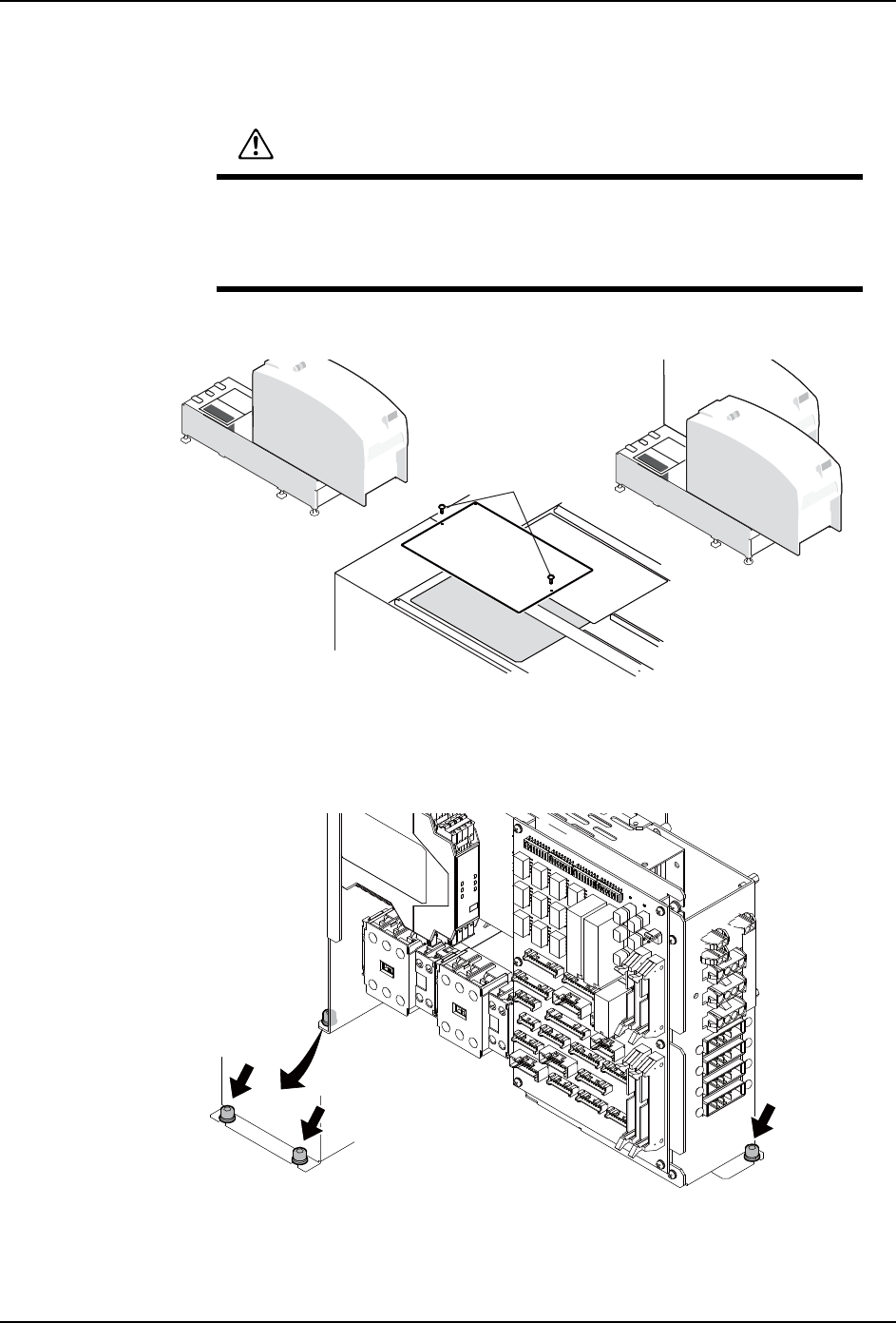 拆除基座上盖板,在其开口部进行作业时,请注意没有其他作业者拉出 /
