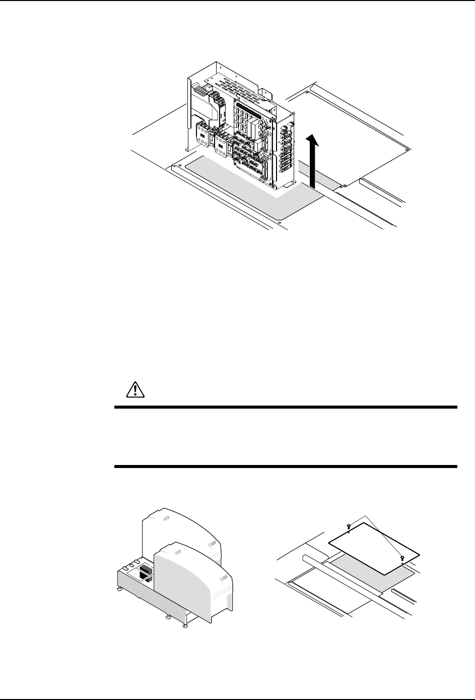 拆除基座上盖板,在其开口部进行作业时,请注意没有其他作业者拉出 /