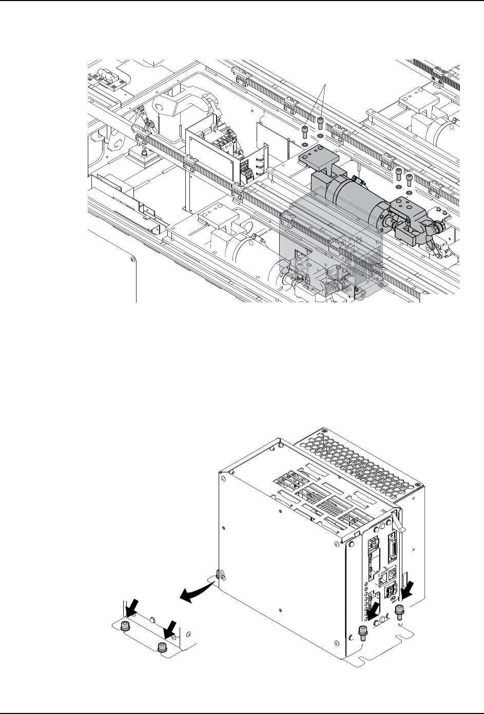 6. 拆除 CPU 箱正面侧的螺栓 (2 根 ),拧松背面的螺栓 (2 根 )。