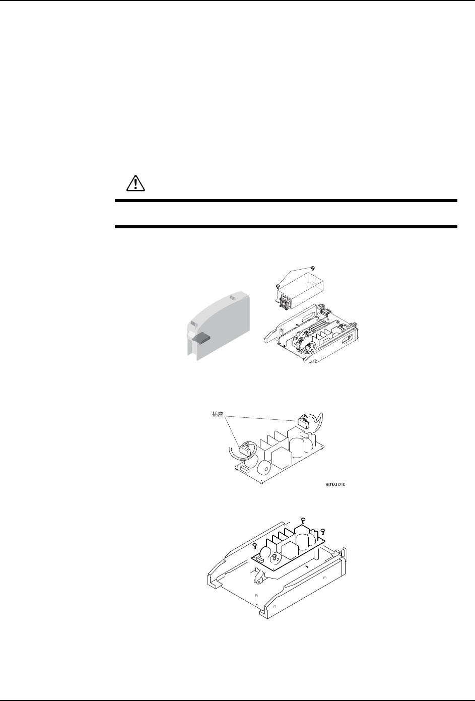 拆除基座上盖板,在其开口部进行作业时,请注意没有其他作业者拉出 /